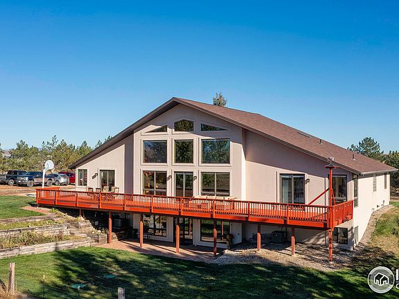 Scenic Berthoud Custom Home on 4.75 fenced Acres, 5 Bedrooms, 5 Baths, 6440 sqft, huge deck, lower level walk-out to covered porch and additional kitchen, Mountain and Water Views! Cathedral Ceiling and Open Floor Plan allow plenty of sunshine with amazing vistas and sunsets. Grand entry with office and dining room flows through a glass staircase to the great room. An Entertainer's dream, enjoy numerous areas to gather including in the lower level theatre style media room. Huge laundry/mud room off Garage and back door. See virtual tour tab for an incredible flythrough movie experience of the property. Oversize attached 3 Car Garage and 1 Car detached Garage. Spacious 1200 sqft outbuilding with RV Door, Electric 400 amp/Water/HVAC. Low HOA fee for irrigation usage from the pond on the property. Radiant Floor Heating, Central A/C (2 units), Septic, Propane (owned), Little Thompson Water District (no Well), Poudre Valley REA Electric, Several Internet Options. Fire suppression throughout home. See Docs Tab for Pre-inspection report or contact agent. Horses allowed. Finance this home using preferred lender and get 1% off of your interest rate and pay no loan fees on a future refinance (terms apply).