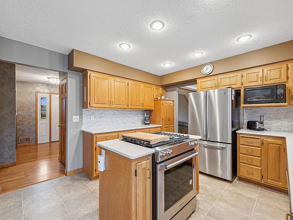 Offers due today May 7th by 4pm - by Super Stillwater 3Br/3+ updated ba in this light and bright beauty! Hdwd floors in foyer lead to spacious living and formal dining room. Features include: Kitchen remodel in 2022,Cambria quartz counters & center island w/grill.custom backsplash, stainless steel App.Main floor family room ,Newer carpet & paint, gas fireplace, panoramic views of Better Homes & Gardens Lansdcape & BBQ deck! Spacious 3 bedrooms up with Master br & Corner Jacuzzi tub. Lower Level fully insulated in 2020 and 2 great sunny Egress windows to compliment your own finishing ! 2 Car garage w/state of art opener w/camera..! See Supplement ..!