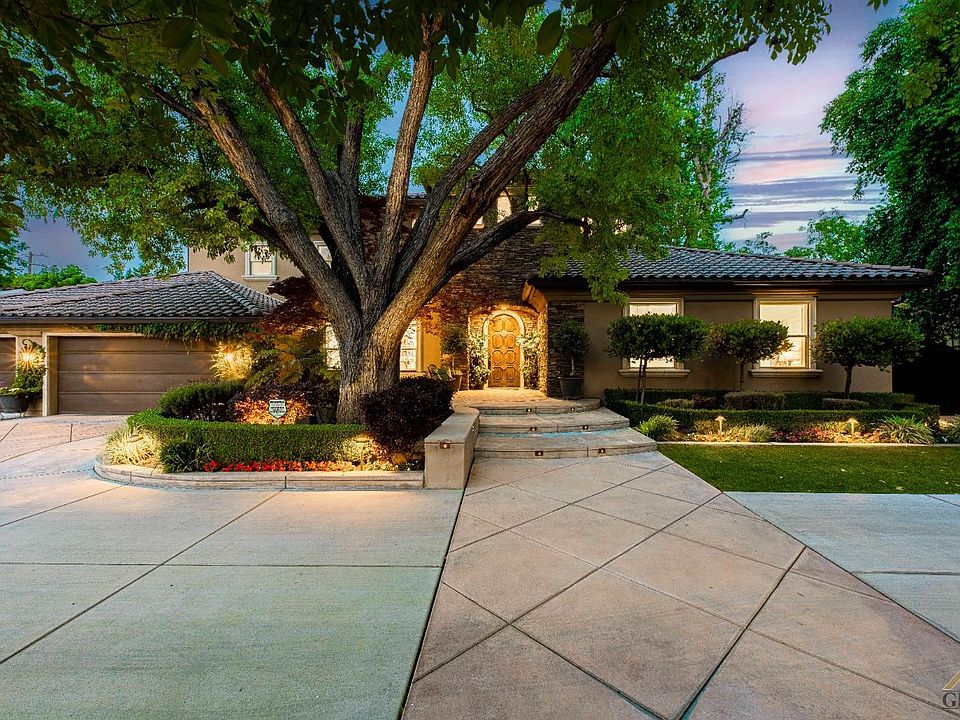 Olde Stockdale Tuscan Estate with Modern Interior will take your breath away! Extensively renovated w/new flooring throughout the main level, quartzite countertops, premium lighting, and refinished cabinetry w/new pulls. The grand entry has a gorgeous curving staircase and views of the great room w/ coffered ceilings. Full bar for entertaining plus climate-controlled wine room. The gourmet kitchen is huge w/ beautiful custom wood work and a farmer's sink. The master suite consists of the entire second story and is a relaxing oasis of productivity and rejuvenation. French doors open to the covered balcony overlooking the backyard to enjoy the sunrise. The master bathroom features a 2-sided fireplace, jetted bath, and separate walk-in closets as well as access to the gym w/ morning kitchen. Wood paneled office fit for the C-suite opens to the landing which doubles as a large lounge area. Lots to love in the backyard featuring a salt water pool & spa, covered patio and mature landscaping.