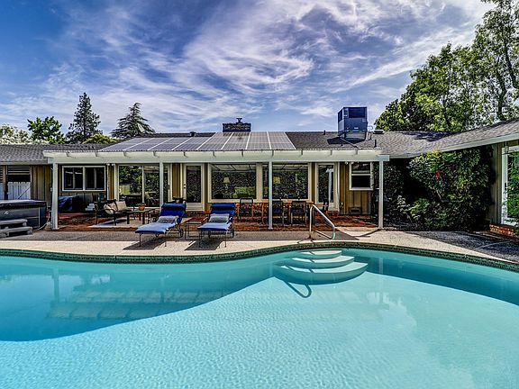 Upgraded for efficiency/ease of living with the following in last 6 years: owned solar, new roof, insulation, HVAC/ducting, pool resurfacing, plumbing, tankless water heater, double ovens, electric car charger & 2023 Hot Springs Hot tub The backyard oasis features many "zones" including a large covered patio, secondary patio and even a private sandy fire pit/hammock alcove. Detached studio/pool house with mini split unit great for entertaining or private office area, rv parking and large front circular drive with covered porch to enjoy the mature landscaping.