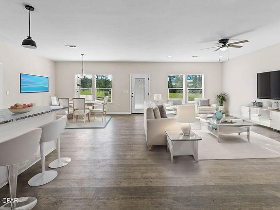 *Seller offering $2500 to buyers closing cost/down payment*. Welcome to your brand-new dream home located just outside the city limits! This beautifully designed 4 bedroom, 2 bath residence offers a seamless blend of style and functionality, ideal for both entertaining and everyday living. Step inside to an inviting open concept layout, accentuated by durable vinyl plank flooring and an abundance of natural light that enhances the home's airy and spacious feel. The kitchen is equipped with sleek stainless-steel appliances, elegant granite countertops, and a central island with a breakfast bar, perfect for quick meals or chatting with family while cooking. Retreat to the master bedroom, a peaceful haven featuring an en suite bath with stylish wood-look tile flooring, a custom tiled shower, and a generous walk-in closet designed for optimal organization. Outdoor living is just as thoughtfully considered, with covered front and back porches, durable Hardie board siding and an attached garage, adding to the convenience and curb appeal. Located within walking distance to local schools, this home is perfectly positioned for families looking for quality living in a convenient location.