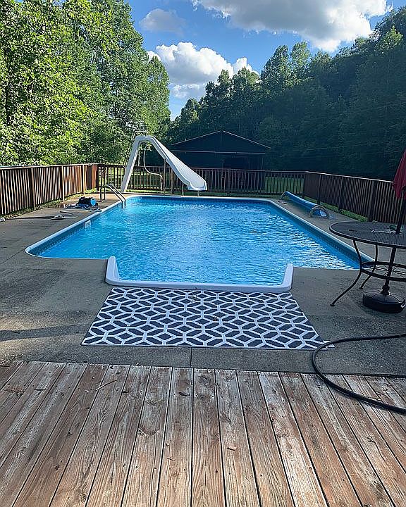 Welcome home to your very own Log Cabin on 3 acres! From the covered rocking chair porch that runs the length of the front of the house to the soaring living room ceiling with exposed beams you will feel the quality of the construction. The main floor features 2 large bedrooms, huge bathroom and even larger laundry room, an eat in kitchen with plenty of counter space and loads of cabinets. Upstairs is another large bedroom and loft living area. The heating and air system is just a couple years old plus there is an outdoor wood stove tied into the ductwork if you want to heat with wood. There are 2 separate septic tanks and 2 wells, but the property is served by Rowan Water. The barn has 3 stalls and a hay loft. The 2 car detached garage matches the house and has a bonus room above it. Just when you thought wow that's a lot... did I mention the inground salt water pool? It can be heated with the outdoor wood stove and it has a concrete pool deck and is completely fenced.