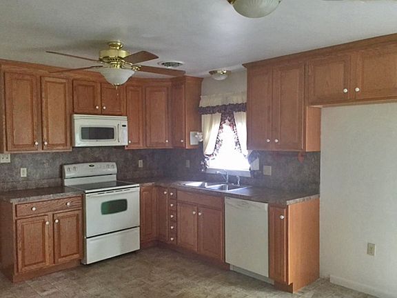 Perfect Rancher on nearly 1/2 acre with remodeled kitchen w/newer appliances, 2 remodeled baths, 2 car garage, and full basement. Special NO money down financing available!