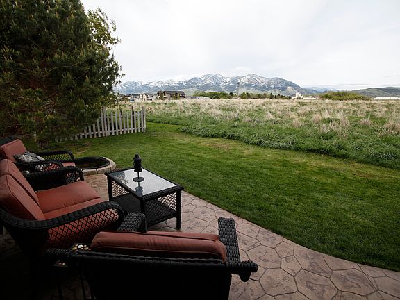 Beautiful townhome close to all things in Bozeman. This home has a rare central location that does not leave you living on top of your neighbors: community open space out the front and 64 acres of open space out the back. The best views of the Bridgers you will find anywhere in town. Home has 3 large bedrooms and 2 full baths. Custom finishes in the oversize kitchen (slate backsplash, granite counter top center island, stainless steel appliances, etc.). Large open living spaces perfect for entertaining. Built in entertainment center & surround speakers with second zone wired for sound in the kitchen. Amazing backyard with stamped patio and pond/waterfall feature. This home is meticulously cared for and move in ready. Low HOA fees ($85/qtr.) Shown by appointment and offering 2.5% buyer Agent fee. Don't miss out on this one.