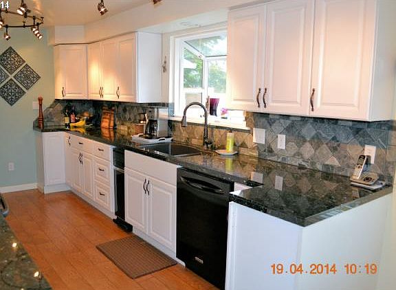 3 Bedroom/2 Bath Travertine glass enclosed easy step-over showers, Kitchen boasts granite countertops, energy-efficient appliances, and enlarged kitchen area. Master bedroom has separate access to covered deck and above ground hot tub. Easy care terraced fenced yard, with enclosed RV pad 22x28'. Beautifully accented walls, with flowing, floor plan living space, lots of windows, installed in 2012. Living space is on one floor.