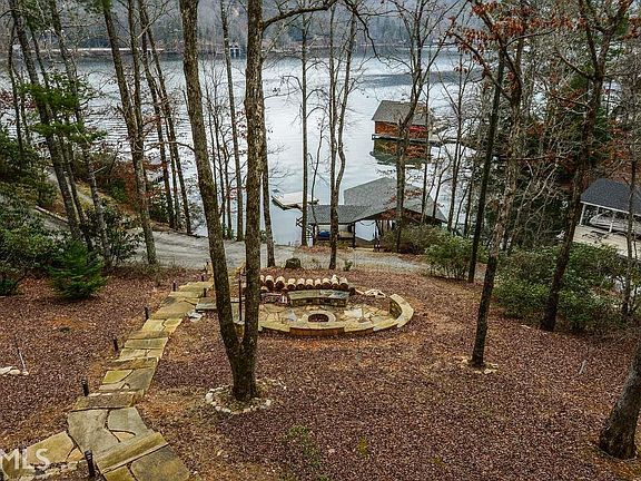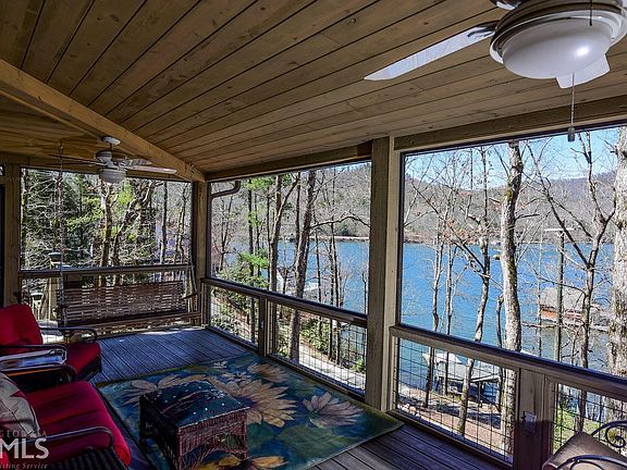 This 5 bedroom, 3 bath Lake Burton home sits above the lake in a peaceful, private setting. Graceful steps lead to the custom designed masonry fire pit created to compliment the topography between the house and the two stall boathouse. The main level of the home offers a great room with wood stove, two bedrooms and a full bath. The heart of the home is a wraparound deck with two screened porches and a wonderful outdoor dining table. The upstairs owner's suite with sitting/office nook provides a private retreat from guest. The lower level living space has a comfortable family room, two bunk rooms , a full bath and the laundry room. 2 car garage with attic storage. Paved drive. Easy access to the boathouse by way of a golf cart.