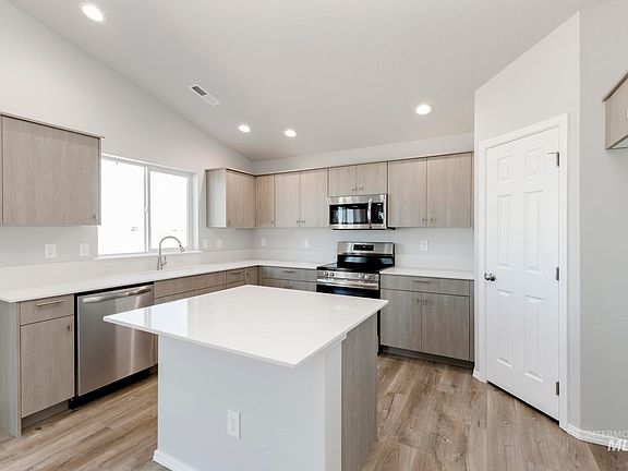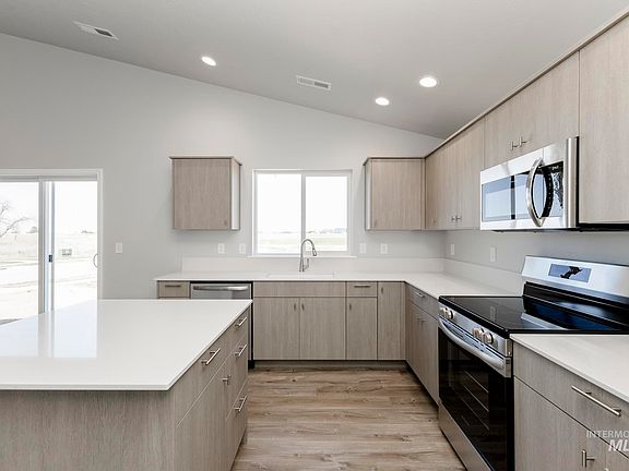 This new home located in beautiful Mountain Home, Idaho has all the comforts you need & more! Dreams do come true in the Harrison 2025! Get the single-level home you always wanted without sacrificing any living space. The outside world will melt away while you relax in the bright & sunny living room at the rear of the home. The kitchen comes with stainless steel appliances and stylish solid surface countertops, adding both functionality and aesthetics. Discover an oasis of solitude in the primary suite with its enviable walk-in closet, dual vanities, and two refreshing windows. The concrete patio entices you to spend time outside so you will not miss even a moment of nice weather. With spacious bedrooms and a thoughtful layout, the Harrison offers the perfect balance of comfort and style. The dedicated laundry room adds even more convenience to your daily routine. This home is truly designed for modern living. Photos are similar. All selections are subject to change without notice, please call to verify.