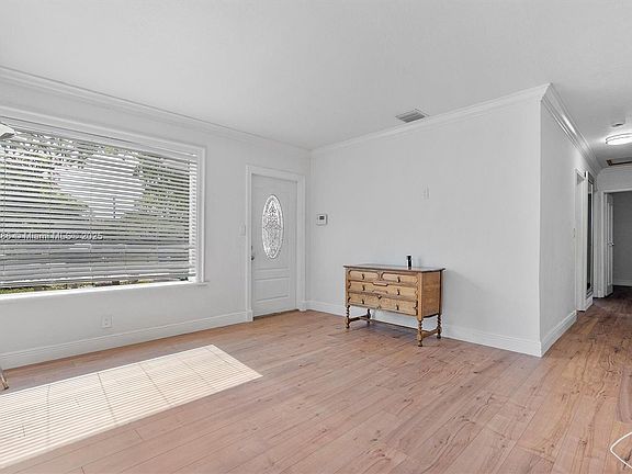 SINGLE FAMILY HOME IN HOLLYWOOD - Recently updated kitchen with gas stove, high-end countertops, and cabinets. Renovated bathroom. Features include laminate wood flooring throughout, crown molding, and impact windows. No popcorn ceiling! The spacious layout features both a family room and a living room. Fully fenced yard provides privacy and includes a large workshop. Central location with convenient access to local amenities and major roads. Functional updates throughout. Located in an established Hollywood neighborhood with easy commute options. Ready for occupancy. Contact for viewing.