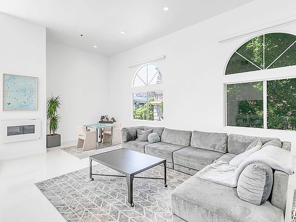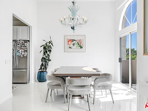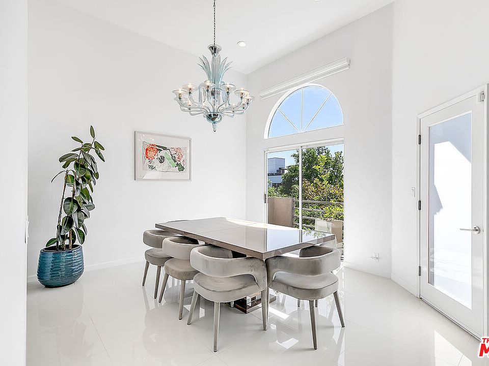 Steps from Melrose Place, this renovated penthouse boasts soaring ceilings, floor-to-ceiling windows, and sweeping views of the Hollywood Hills and West Hollywood skyline. The open layout is filled with natural light and features sleek white porcelain tile and upgraded flooring. A gourmet kitchen with quartz countertops, modern cabinetry, and stainless steel appliances opens to the living area. The spacious primary suite offers a walk-in closet and spa-like bath with a jetted tub and luxury shower system.