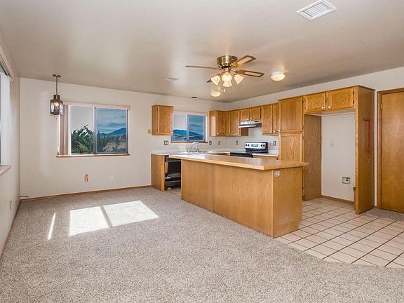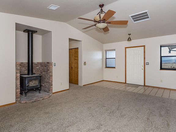 Amazing 360 degrees views from this five acre horse property. Huge butcher block island in kitchen where you can prepare meals and still enjoy the views. This home offers three bedrooms, two baths, an attached two car garage and a huge rec room which is included in the square footage. There is a Wood Burning Stove in the living room to help reduce your heating bills. Room for your livestock to roam and a two stall barn on the back 2.5 acres with cross fencing. New flooring and interior paint!