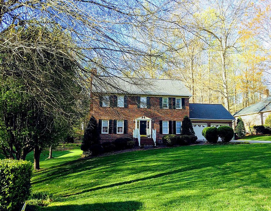 3 Story 100% brick exterior home with brick mailbox. Large landscaped yard. Aluminum facia and trim finished around windows for no painting. Full basement mostly finished plus workshop, storage hall, and utility room. 2 car garage with bonus attic storage overhead, beautiful large 12'x24' back deck stained Cedar Naturaltone, two gas log brick fireplaces with hand crafted mantles and custom oak surround in living room on Great Room fireplace. Locally handcrafted solid oak cabinets in kitchen with new ceramic tile floor, full tile backsplash, and granite countertops. Additional built in cabinets in office/den and master suite. Meticulously maintained. Connected Cable TV. Underground utilities (no overhead wires!), Charming street lamps.