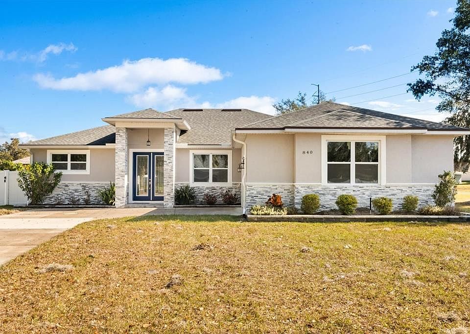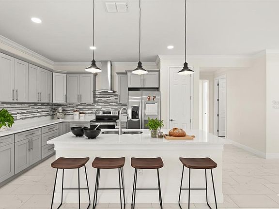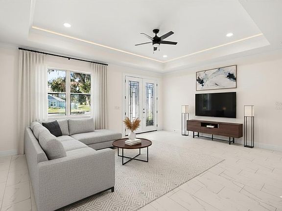 Welcome to 840 Oaks Shores Rd—a move-in ready retreat in a quiet, gated community where life slows down and the lake lifestyle speeds up. With private access to Lake Griffin, your weekends can be filled with boating, fishing, and sunset cruises—while everyday life feels like a vacation surrounded by Central Florida’s natural beauty. Inside, enjoy a light, open layout made for connection and entertaining, featuring an open-concept kitchen with quartz countertops, 42" stylish gray custom cabinetry, and stainless steel appliances, flowing seamlessly into the living/dining combo. Thoughtful upgrades like ceramic tile throughout for easy maintenance, tray ceilings, and crown molding add comfort and polish. Step out to the covered lanai—perfect for morning coffee, evening wind-downs, and hosting friends. Situated on a spacious corner lot, there’s plenty of outdoor room to play, garden, or create your dream backyard oasis. Enjoy the best of both worlds: peaceful, scenic living with convenient access to shopping, dining, parks, and all that the Leesburg lakefront area has to offer.