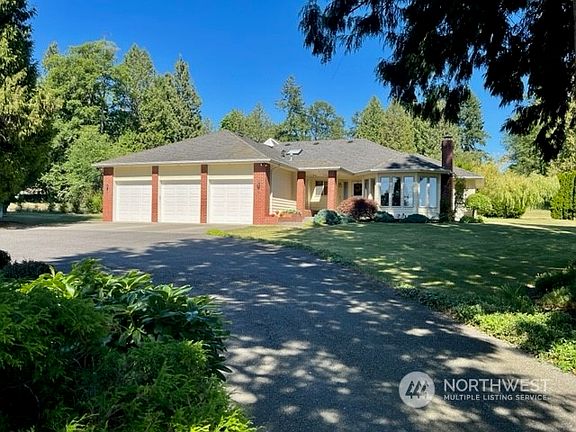 Single level living at its finest! This Spacious Custom home sits on 1.57 acres, 4 bedrooms, upgraded gourmet kitchen & bathrooms, skylights, vaulted & tray ceilings & large 3 car garage. The gorgeous kitchen opens up to the great room and dining area which makes it ideal for entertaining. Separate dining room, living room with FP. Retreat outdoors to relax in the hot tub & enjoy the large, enclosed patio. Surrounding low maintenance landscaping & mature cedar trees adds privacy & a feel of country living. Constructed with quality materials and workmanship, Cedar siding. Other outdoor treats include a sports court, dog run, playground & RV tie-ins. Less than a 5-minute drive to schools, restaurants, shopping & U.S.-Canada border.