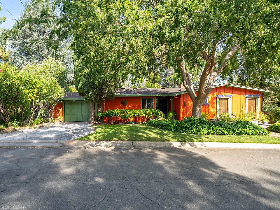 Late 50's custom home, very retro with many modern improvements while still retaining the feel of an era gone by. Features River rock fireplace with efficient wood burning stove with stainless steel liner & custom maple mantle, vaulted open beam ceilings, dual pane windows, refinished Parquet flooring and very private backyard with hot tub. Third bedroom does not have a closet but could be added.