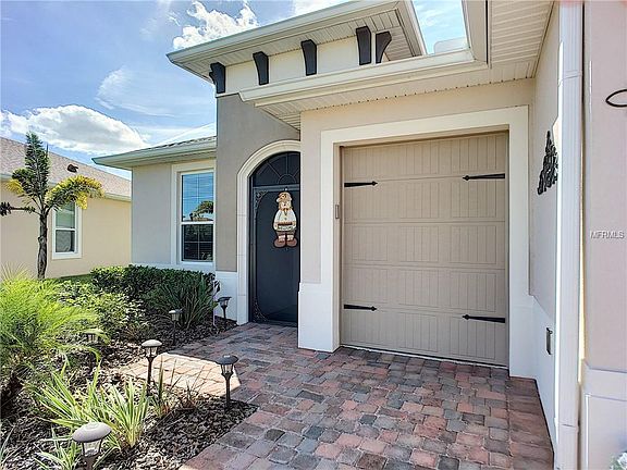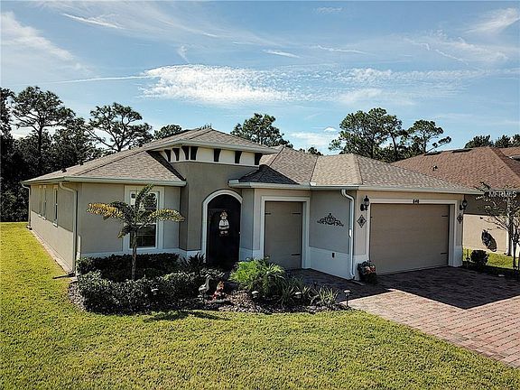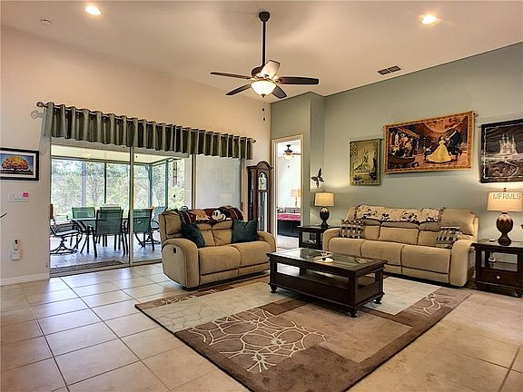 Stunning home set on a preserve and a little over one year old. This newer model home boasts elegant luxury, is loaded with upgrades and features the open floor plan buyers are seeking. From the double master bedrooms, enclosed screened lanai, 8 ft.doors, large ceramic tile thru living and wet areas, den/office, the Calto floorplan offers high ceilings, architectural detailing, high end lighting fixtures, granite counters kitchen and quartz in baths, a beautiful kitchen complete with large counter open to the great room, 42 inch cabinetry, skylight above sink area and more. Both bedrooms are en-suite. A laundry room and two car garage plus golf cart garage complete the home. The lanai faces a conservation, has tile flooring, and is covered which brings the outdoors in for your year-round enjoyment! Why buy new when this is complete with all the extras--fans, light fittings, etc. Live lifestyle you deserve. Solivita is the premier 55+ Community in Central Florida. The community has 14 heated pools, 2 championship golf courses, clubhouses with exercise facilities and activities galore! It's all within 20 miles of all the Kissimmee attractions and theme parks. Don't wait--Come visit to see for yourself. Be one of the select few that get to call Solivita home!