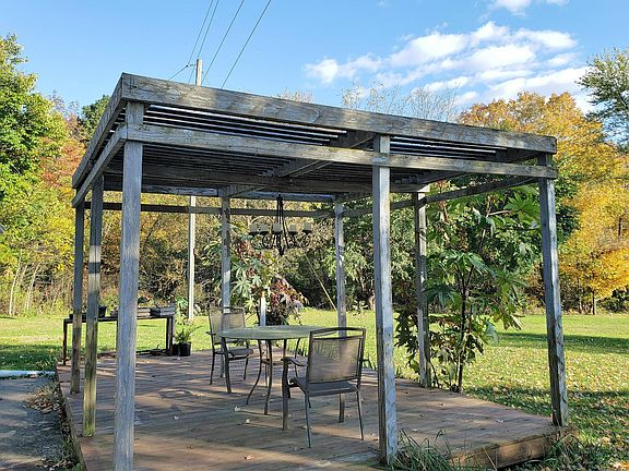 Country Living on 1.5 Acres awaits! Property features an Underground Spring, Mudroom, Spacious Laundry Room, Mexican Louvered Outdoor Entertainment Area, Deck, Perennials, Large Pole Barn, Kitchen Island and more. Open Covered area behind the Pole Barn is perfect for RV Storage or Outdoor Entertaining. Reasonable Taxes, Great Location, and Circular Drive makes this a winner!