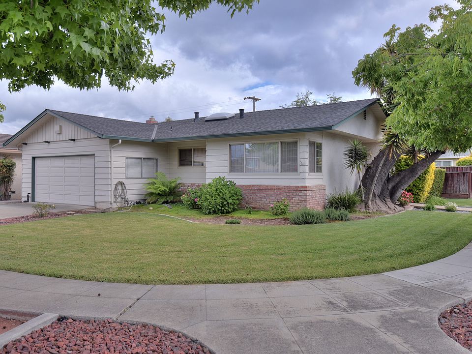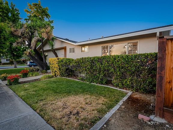 You can't deny the curb appeal of this alluring corner-lot home on a quiet street with excellent Cupertino Schools. A work of art inside and out-open floor plan, gleaming new tile kitchen floor, skylight, regal stone mantle fireplace, artisan showers. The yard has rose bushes and a neat lawn. Multiple waves of recent remodeling added a trove of modern features. In 2016, hardwood floors and dimmable recessed lights were installed throughout, and the kitchen received a granite countertop, gas cooktop, and cabinets. In 2018, pavers were added to the backyard, and the garage received cabinets, EV charger, and epoxy flooring. In 2021, the owners suite was remodeled. Everything is newly painted- exterior, interior, and doors. The backyard has a covered patio. Tesla solar panels are owned, central A/C+heat, ADT-ready, wired for remote monitoring. Perfect location to work, dine, shop and play- near Apple Park, Stevens Creek Blvd, 3 large shopping malls, and countless natural parks.