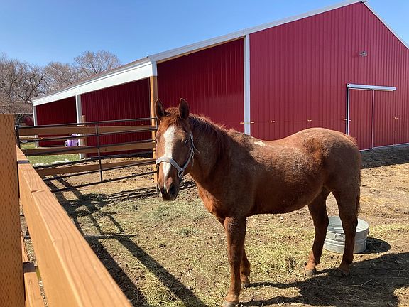 - Exterior Features: Acreage Fenced, Corrals, Deck, Dirt Ditches, Fenced Yard, Flat Terrain, Garden, Horse Property, Irrigated, Landscaping, Mountain View, Natural Gas to Property, Patio, RV Parking, Sprinklers, Barn, Cable, Covered Patio, Porch