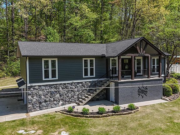 This stunning 3 bed/2 bath home sits on 2 acres. The main floor includes a master bedroom w/ensuite, 2 additional beds, a bath, living area, kitchen, dining area, sunroom & utility room. As you enter, the impressive concrete driveway leading up the hill to the house is a standout feature. Next the welcoming covered front porch & wooden door. Inside the high vaulted ceilings add to the beauty of the magnificent home. The landscaped grounds are beautifully maintained with a beautiful inground pool. Enjoy the stunning views from the front porch & a peaceful view of the pool from the sunroom. Also a bonus room in the basement could serve as a playroom, media area or even a 4th bed.