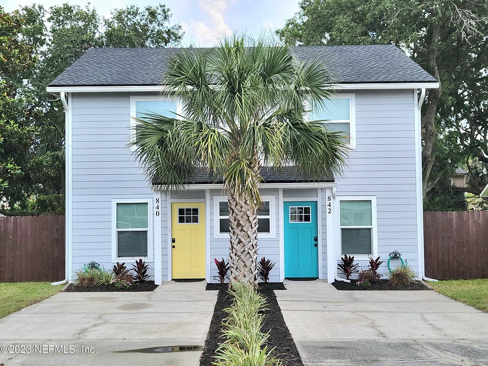 This magnificent duplex is back on the market as the buyer's financing fell through! FULLY RENOVATED turnkey DUPLEX just 7 blocks from the beach on a 50 x 125 lot. close to shopping, dining and Baptist Medical Center. Tile flooring downstairs in both units, NEW kitchen cabinets and appliances. Recent upgrades include brand new windows and sliding glass doors to a fully FENCED backyard. NEW roof installed June 2023. Bathrooms gut renovated with CUSTOM vanities and fixtures. Very spacious bedrooms on second floor, balconies off of the rear master bedrooms. Live in one side of the duplex and rent the other for an extra income, enjoy the NO HOA restrictions and CDD fee FREE living. Washer and dryer are located in the patio closet and are included! Property also listed under MLS # 1232460