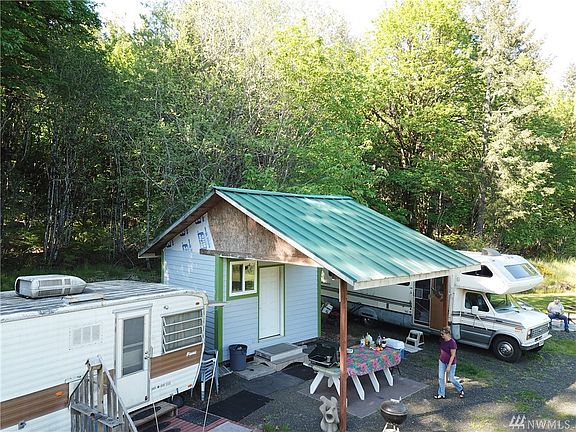 Picturesque 6.2 Ac campsite/homesite has power/water. Healthy Fruit trees, flowers, grapes, nice gardening/pasture soils. Springfed water supply provides ample freshwater pumped to hydrants at the campsite. Older septic works fine for RVs but probably not approvable for new home. Outbuildings include washroom with hot water heater and shower. Small creek runs across property through the woods. Some good size evergreens. Just 6.6 miles to great public boatlaunch to saltwater inlet. Owner terms!