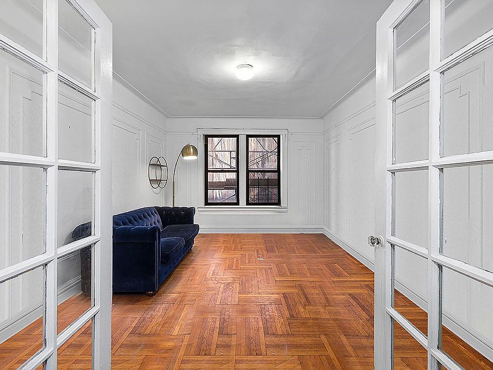 This amazing enormous one-bedroom with a vast formal dining room converted into a two-bedroom, one-bath apartment is situated in a 54-unit pre-war co-op building located in the most sought-after section of Crown Heights.