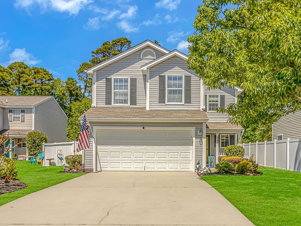 Gorgeous 4 bed, 2.5 bath home located on a fenced in wooded lot in the highly sought-after Carolina Forest school district! This immaculately cared for home is tastefully finished with plenty of opportunity to customize it as your own. Entering through the front door, you will see an open living area and well-lit sunroom full of natural light! Kitchen is complete with breakfast nook and beautiful, complimenting backsplash and countertops. Adjacent to the kitchen is a dedicated dining space that can easily be converted to an office area, play area, or book nook. The sky is the limit! The whole downstairs has recently had brand new LVP installed. Upstairs, there are 3 nice-sized secondary rooms, perfectly situated to house beds, an office, workout room or whatever best suits your lifestyle. A very large master suite boasts an ensuite bath and walk-in closet with beautiful fixtures and finishes throughout! A dedicated laundry space is located on the second floor, convenient to the bedrooms. This home is pristine, HVACs replaced recently, has loads of room for the whole family and is located in a safe and family-oriented community located in the award winning Carolina Forest school district. Also included in the neighborhood is an 11 acre community center featuring a swimming pool, baseball and soccer fields, basketball court, playground and a covered picnic pavilion. Ask your agent for floor plan and measurements.