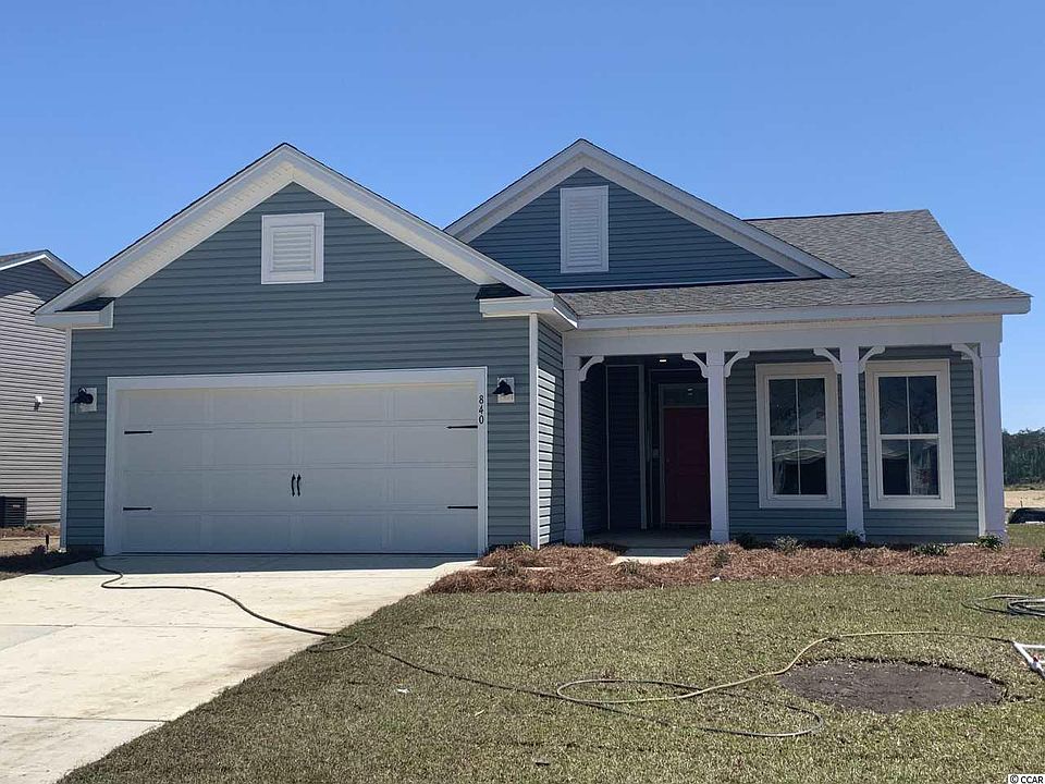 Welcome to Surfside Plantation, a charming coastal community with Natural Gas and is located 3 miles to the beach. Community offers state of the art, zero entry pool, open air pavilion/clubhouse, and food prep room. This home is a Brand New Floor Plan! The Beechwood is a 1-story home that features 3 bedrooms, 2 bathrooms, 2 car garage, and front & rear covered porches. The Beechwood kitchen is massive and features 42" white cabinets, Granite counter tops, breakfast bar/island with beautiful pendant lighting, and subway tile backsplash! This open-concept home design with Vaulted ceilings makes entertaining and hosting guests a delight! The Beechwood includes wide-plank RevWood flooring in all of the main spaces, ceramic tile in the bathrooms and laundry, and carpet in the bedrooms. Home is equipped with a stainless gas range, dishwasher, microwave, SS refrigerator, Washer/Dryer, ceiling fans, and gutters. Brushed Nickel faucets & lighting throughout, and to top it off there's a gas line in back for your grill.