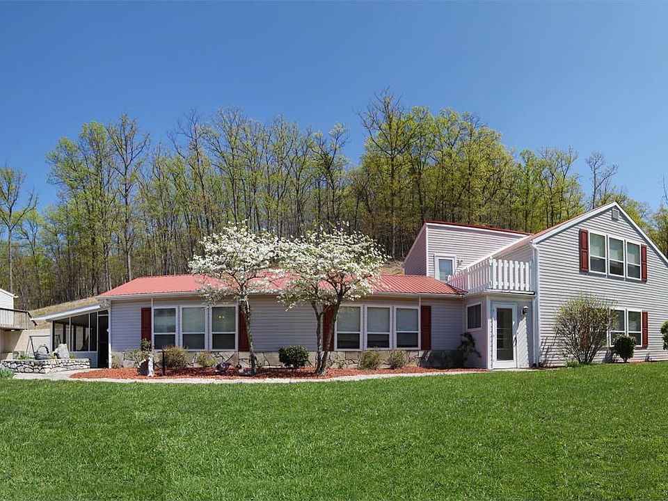 : Remarkable custom built home on 25 acres. 2 master suites. Walkin closets in all three bedrooms. Floor plan is open, screened porch and patio, deck off upper level. Oversized garage with unfinished upstairs. 25 acres of woods, 2 ponds, trails, privacy, but only miles from exit 150