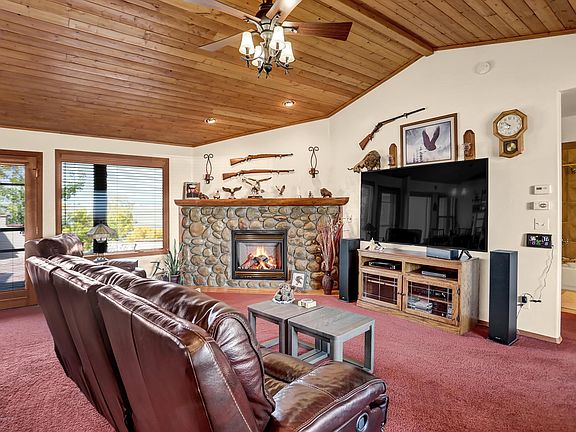 Beautiful 1 level home on acreage close to town with everything you could ask for in a country property. 3 bed, 2.5 Bath. Open floor plan with vaulted T&G ceilings, gas fireplace. Nat gas heat, central air, custom cabinets. Split floor plan. Large master suite, double vanity, heated floors, double tiled shower. Large clean crawlspace w/ heavy duty vapor barrier. Separate dog run, private garden area and the incredible 850 sq ft custom stone patio with built in BBQ area, table and fire pit. Views of the mountains, wildlife, river and town. Attached 2 car garage and detached 40X40 heated shop with 220 electrical and 2x6 insulated walls. 265 ft well pumps into 1350 gal cistern. Plenty of water! RO system & water softener. RV parking with 50 amp and sewer. Too many features to list. See today!