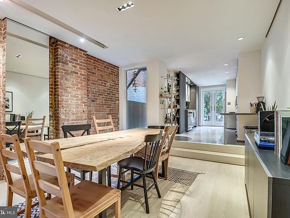 Century old bow-front rowhome, completely transformed to a sleek, sophisticated, contemporary living space. The open concept floor plan is accented with an exposed brick wall, a dramatic central staircase and European style kitchen, with ample storage and stainless appliances. Rear double glass doors open to a private backyard with a blue stone and wooden terrace - a true oasis in a city. Second floor features an architecturally interesting layout, with a nice size primary bedroom, walk-thru closet and sitting area. The second bedroom is fitted with an amazing, and increasingly important, home office....which has an expansive full wall window overlooking the home's garden. Lower level features a tiled family room with spacious laundry and storage area, and recently installed waterproofing system. Located in Hampden, one of the city's most inviting and vibrant neighborhoods! See Virtual Tour for Interactive Floor Plan.