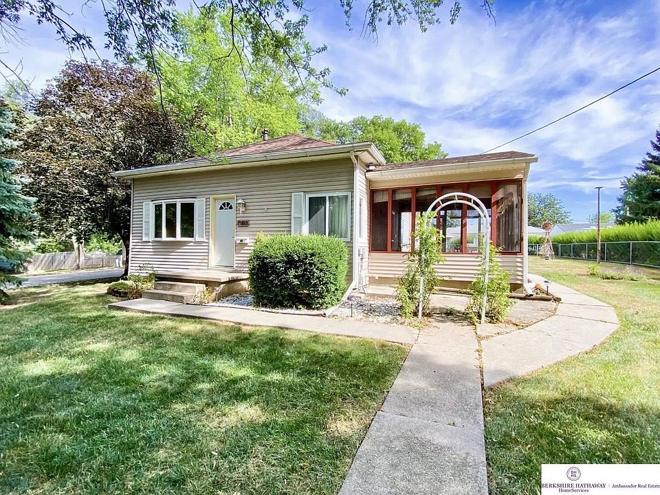 Enjoy small town living in this adorable home on a corner lot close to the school. Lots of potential in this home to make your own. Primary bedroom has 1/2 bath. 4th bedroom was converted into main floor laundry. Basement has large room waiting to be finished. All appliances stay including washer & dryer. Oversized 2 car detached garage. Enjoy the screened in back porch that leads into a nice backyard with patio and shed.