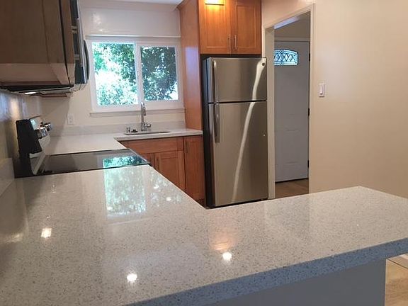 OPEN HOUSE SATURDAY 10-20-18, 11:15 - 11:45 In downtown San Carlos, walk to everything. All flooring is 1 yr, Ceramic tile in kitchen and bath, hardwood in the rest of the home. 1 yr. new kitchen w/new cabinets, quartz counters/breakfast bar, s/s appliances (dishwasher, smooth top range with convection/self cleaning oven, micro-hood, ice maker in fridge), recessed LED lighting. 1 yr. new electrical panel, outlets, switches, lighting. Crown molding and 3.25 baseboards. Entire building has newer double pane windows, front doors with window and screen doors. Bath up dated with resurfaced tub/shower w/non-skid floor, new vanity and sink, fan and light. Huge private deck off living room surrounded by mature trees. Lots of closet space plus lg. storage locker in carport. 1 car parking in carport below. Complex has elevator and laundry. Pool heated June through October. Beautiful grounds with mature trees and lighted landscape. Close to all that San Carlos beautiful downtown offers and Cal Train station. Deposit same amount as rent, prefer 1 yr. lease. Please contact VIP (Caldre #01254368) at 650-595-4565 to see or ask questions. No sec. 8, no pets, no smoking. Thank you for your interest in our listings for lease and for sale. Owner pays water, trash.