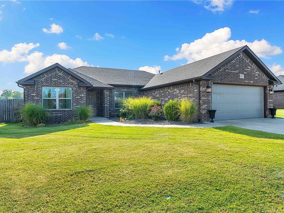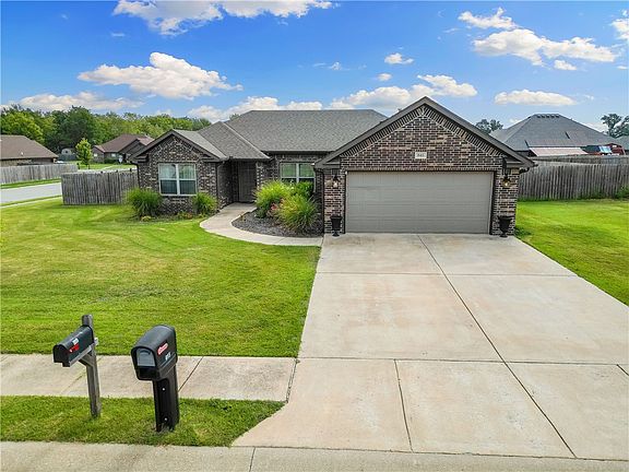 Welcome to this beautiful all brick home on a large corner lot! This 3bed 2bath home has all new paint throughout including walls, doors, trim and cabinets! Additionally, all new light fixtures installed throughout the inside and outside of the home. This property features an open floor plan, large kitchen island, granite countertops, pantry and wood look tile. Other desirable features are the split floor plan and tray ceilings which add to the open feel of this home. New carpet installed in two bedrooms 2023 and a brand-new dishwasher 2024. Let's not forget the backyard with a covered patio for enjoying your morning coffee, fully fenced yard and a 12x8 storage barn for all your yard tools! Enjoy the convenience of easy access from this Pea Ridge home to everything Northwest Arkansas has to offer. Don't miss seeing this home! Property is Agent Owned