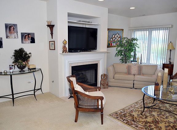 Exceptional, light filled, 1592 sq.ft. "D" model, Delacourte condo built in 2000 has a great floor plan with 2 BRs + a den, 2 baths, & 2 indoor garage spaces. Light filled 20x16 living room has recessed lights, a gas fireplace w/ built-in cabinet & TV hook-up. The 12x10 dining room "L" is open to the living room offering space to expand a table for holiday gatherings. The charming 10x10 den and the big LR both have sliding doors to a balcony overlooking pretty ponds. The 22x9 kitchen has great work space, attractive cabinets, a full array of appliances, & room for a table. Luxurious 19x11master bedroom with a large walk-in closet can hold a king sized bed & full suite of furniture. The master bath has a soaking tub, separate shower, & double sink vanity. Bedroom 2 is 14x11 with a roomy closet. There is a hall bath & in-unit laundry with a full size washer and dryer. This well cared for, all owner occupied building is in a great location near shops & transportation.