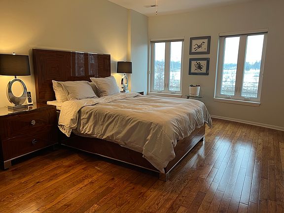 Welcome to this meticulously maintained, extra-spacious condo at The Delacourte in Buffalo Grove with updated bathrooms and kitchen appliances. This highly sought-after floorpan boasts 2 bedroom/2 bathroom + den, office or additional bedroom with unobstructed west-facing views overlooking a serene duck pond with your own private balcony. The extra-large primary suite has a spacious walk-in closet and spa quality bathroom. With newer windows, sliding doors, kitchen appliances, furnace and A/C, there is nothing left to do but move in. Additional features include hardwood floors throughout, in-unit laundry, heated garage with two parking spaces, two large storage lockers, included.