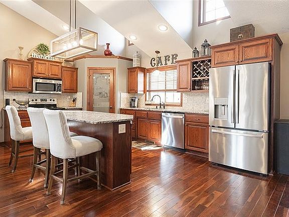 You will fall in love with the Stunning 5 bedroom, 5 bathroom 4-level home in a great location. The main level features a large open kitchen with granite countertops, corner pantry, granite island, beautiful backsplash, and gorgeous hardwood floors. Kitchen appliances are included along with the washer and dryer. The home has been very well kept and maintained. The open living room has a gas fireplace along with patio doors that walk out to a large deck, overlooking the wooded backyard. The upper level has 3 bedrooms and two full bathrooms. One of the upper level bathrooms is a Primary Suite that has ceramic tile and a dual sink vanity. There is a huge walk in closet as well in the Primary suite. Lower level has a large family room, bar area, laundry room, and an office with French doors and great back yard views. This room could also be used as a flex room, or gym area. From this level you can walk out to the beautiful stamped concrete patio and entertain guests or sit by a fire and enjoy the private backyard. The 4th level has two bedrooms and a full bathroom with double sinks. This house has it all. You will appreciate the privacy and scenery of the back yard. This home was custom built and has had one owner. Don't miss the chance to be steps away from the Oak Hill Golf Course with an amazing location and wonderful neighborhood.