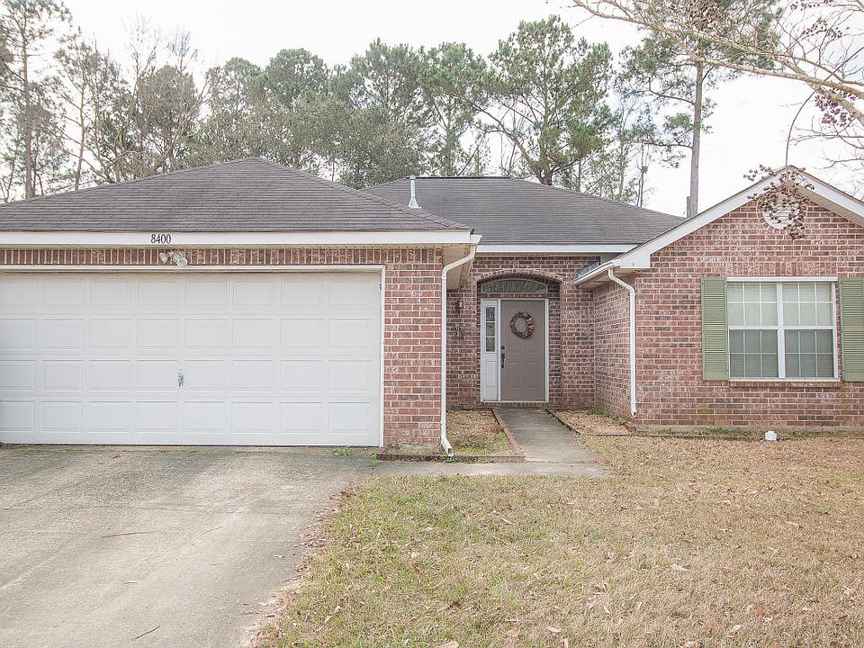 Cute house located on almost half acre corner lot! Entry foyer-Large kitchen with tons of cabinets/countertops with bar top open to spacious living area. Split floor plan-Master suite with tons of space & bath with separate tub.shower with walk in closet. Two guest best rooms with shared bath. Yard is partially fenced and extends further back and whole house generator! Qualifies for 100% financing.