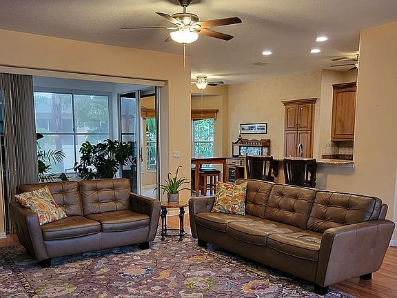 The roof and gutters were replaced in January 2020. The HVAC system has been regularly serviced and works perfectly. New ceiling fans in all rooms provide excellent air circulation. The Samsung kitchen appliances, purchased in 2020, will convey with the home. Also conveying are hurricane shutters with hardware and a water softener. A Rainbird automated irrigation system makes for ease in watering the yards. Conveyance of the LG front loading washer and dryer is negotiable.