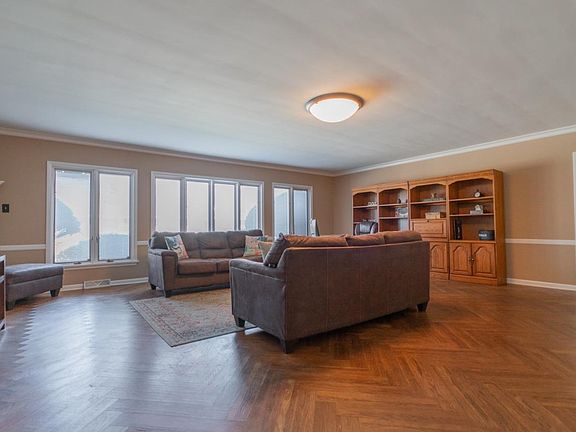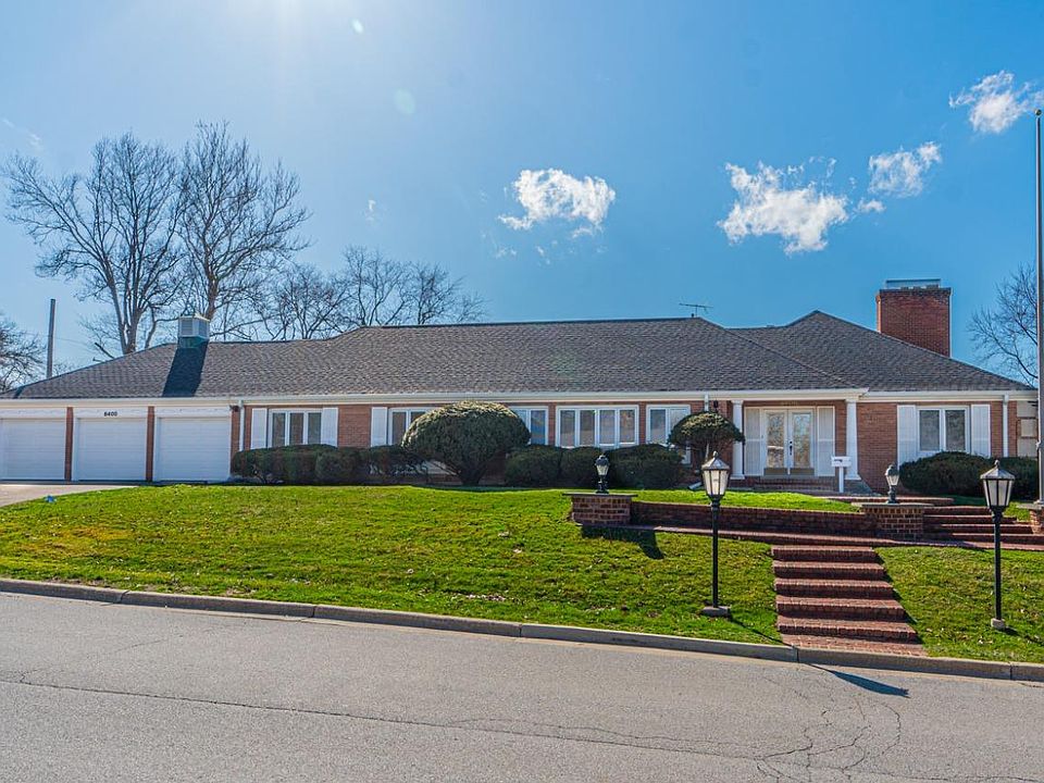 DISTINCTIVE STYLING AND QUALITY ABOUND IN THIS CUSTOM BUILT BRICK RANCH ON OVERSIZED HILLSIDE LOT! Upon entering, you will be impressed by the detail and design that set this home apart from any other. An impressive Great Room combines living and dining and offers marble floors, crown molding detail and fireplace; the Office/Library offers built-in bookcases & cabinets; a main level recreation rm with hardwood set in herringbone pattern; the gourmet Kitchen offers all the I WANTS from granite counter-tops, stainless appliances, large pantry and moveable island; a Sun Room overlooks the landscaped yard & pool. There are four bedrooms: Spacious Master Suite with luxury bath and great closet space; two bedrooms that share a Jack & Jill bath; and a fourth bedroom with its own full bath. Don't miss the large main level Laundry.The huge finished DAYLIGHT basement with wet bar and half bath has space for exercise equipment, game area, workshop, plus lots of storage. Large 3 car garage.