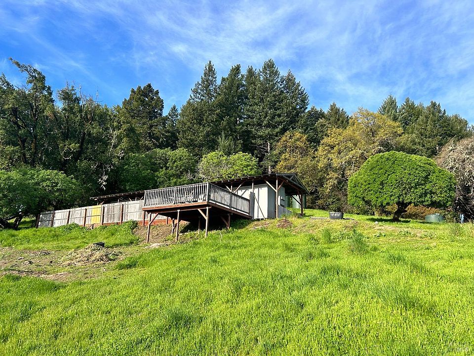 160 acres with a 40gpm well, newly renovated mobile home, spring water, breathtaking views, multiple building sites, and two seasonal creeks. At the top of Orr Springs Road 15 minutes west of Ukiah lies this incredible 160 acre property that runs from ridge top to creek bottom. Panoramic views, wide open meadows, rock outcroppings, seasonal streams, majestic trees, this property has them all... The newly remodeled 1-bed/1-bath mobile with deck is well protected under a metal roof pole barn and situated perfectly for taking in the breathtaking views. A quality solar system provides power, but power poles are also on the property offering a convenient option for grid connection. Ample water is provided by a newly developed well that produces 40gpm and a developed spring. A tent cabin situated on a deck offers a fun option for guest accommodations or income. Direct access from paved Orr Springs Road. 15 minutes to Downtown Ukiah, 15 minutes to Orr Hot Springs, 20 minutes to Montgomery Woods, just over an hour to the village of Mendocino. Owner financing available.