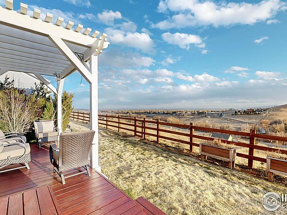 THE VIEWS ARE EXTRAORDINARY FROM DOWNTOWN DENVER TO THE MOUNTAINS, home backs to open space. Discover the epitome of suburban elegance in the prestigious Leyden Rock community. This exquisite property has been meticulously crafted to offer an unparalleled living experience. Upon entering, you are greeted with a front to back view that leads into a spacious open concept living area, illuminated by natural light and accented with high-end finishes. The gourmet kitchen, a chef's dream, is equipped with Quartz counters, extra cabinetry, stainless steel appliances, butler's area and HUGE walk-in pantry. The luxurious primary suite offers a serene retreat, complete with a spa-like en-suite bathroom and walk-in closet with views of the foothills, mountains, and downtown Denver. The fully finished basement offers 9-foot ceilings, FP, wet bar with cabinets and wine fridge. The home also features two private offices for those work-from-home days. The beauty of this home extends to the backyard featuring an oversized 2-tier redwood deck with pergola including an electric awning all overlooking the private open space behind the home with unobstructed views of downtown Denver, Table Mountain, and the foothills. The HOA includes a pool, clubhouse, playground area, exterior lawncare, watering, mowing, snow removal, trash, and recycling. Oversized 3-car features room for vehicles and storage with a 220-volt outlet for easy EV charging, hot & cold-water faucets, and fully finished walls. This home is more than just a home; it's a lifestyle waiting to be embraced. This property is a perfect sanctuary for those who appreciate luxury, comfort, and the great outdoors.