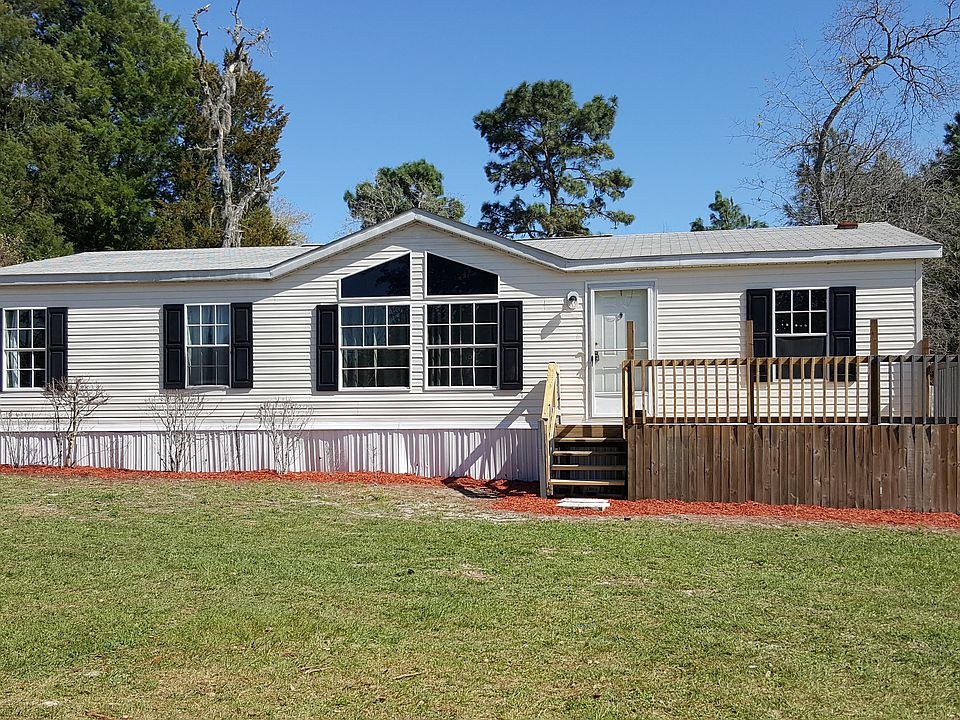 Welcome Home in this affordable doublewide mobile home. This home boast , an open floor plan, cathedral ceilings, real hardwood floors in main living area, wood new laminate flooring in the bedrooms, garden tub, separate shower, inside laundry room, and deck. The kids or grandkids will love playing in the real tree house with tire and rope swings as well as a big slide. There is a workshop with electric and 2 other storage buildings. Large front gate with completely fenced in yard.