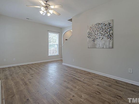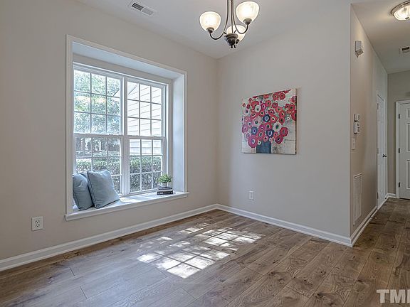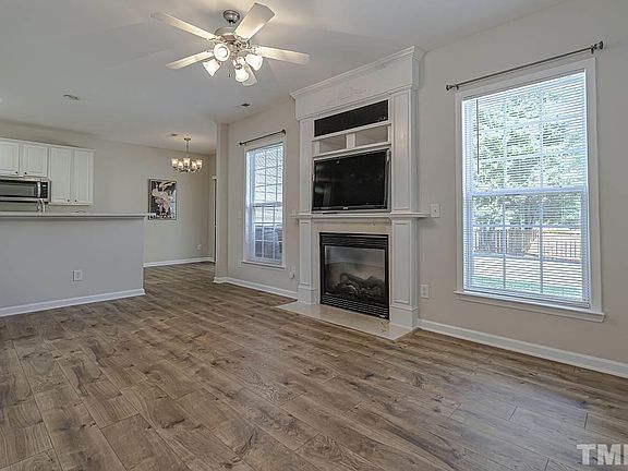 Charming NW Raleigh Home near I-540, RTP with BRAND NEW INTERIOR PAINT, entire first floor wood style laminate, gas fireplace, NEW stainless appliances including FRENCH STYLE refrigerator, separate dining room AND breakfast space. Vaulted master bedroom with walk in closet, dual vanity, separate garden tub and tiled shower. FRONT LOAD washer and dryer convey. Gorgeous fenced backyard with oversized brick patio and trellis. Pool community with walking sidewalks.