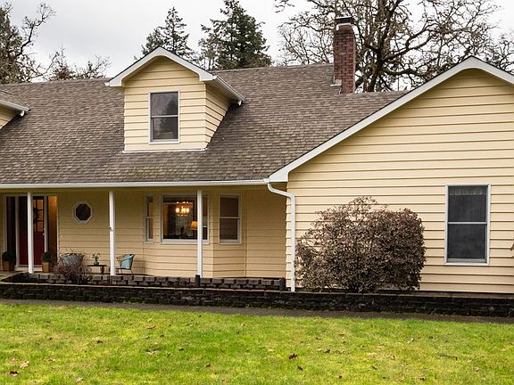 OPEN SAT 12-3. PEACEFUL PARADISE on 5 level ACRES, only 20 minutes to Eugene. Enjoy front and back porches to sit and watch wildlife. Well maintained home w/ spacious rooms including 4BR, or 3BR+study, 2BA, master on main w/ensuite, WI closet. Large mudroom, heat pump, Anderson wood windows, new paint ext. & int., many new floor coverings, 3 sided metal outbuilding, fruit and nut trees, grapes, irrigation well, central vac, P. Hill schools, walk to Elijah Bristow Park & Trails. So many options.