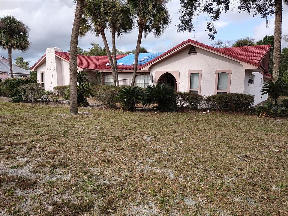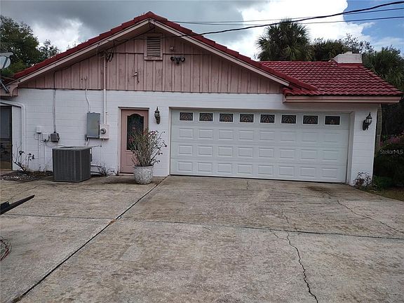Great 4/3 lakefront home with pool on 2.92 acres. No HOA. 3/2 Main house with 1/1 Guest house for a total of 4 bed/3 bath, 4 car garage. Home features an open floor plan, tile and wood floors, unique lighting and wall covering, Family room has French doors, stone fireplace, skylight, wood beams, Formal dining room with chandelier, Sitting room with iron gate to kitchen, Breakfast nook with saloon doors, Kitchen has a built-in desk, large farmers sink, skylight, split bedroom plan, Master bedroom has built-in wall shelves and dressing area, electric fireplace, indoor laundry room, central vacuum system, lightning rods, 1/1 Guest house has a separate entrance, murphy bed, full bath, half kitchen, built-in breakfast bar top with cabinets, covered patio area has a pool with a screen enclosure, back yard has a storage shed with concrete slab, ramp, and attached covered outdoor storage, Gazebo, lake with fishing dock, and more! Convenient to shopping, restaurants, and area attractions.