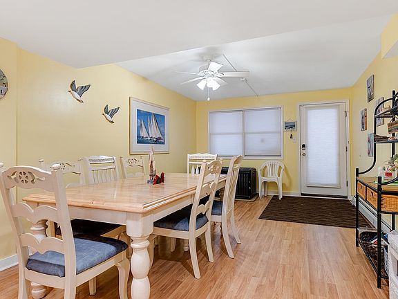 Just show up and relax! This fabulous first floor, corner unit boasts 3 bedrooms, 2 bathrooms and has a view of the pool! Head inside to discover a lovely floor plan. The living room leads to the designated dining room that will easily hold an 8-person table with room to spare. The living room also closes off to make an extra bedroom with a queen size sofa bed. The kitchen has a breakfast bar with seating for 3, a full complement of matching appliances (including the refrigerator), recessed lighting, and tons of counter and cabinet space and has an adjoining spacious dining room! The primary bedroom has a full bath with under cabinet storage and a tub/shower combo. The laundry room is right next door for ease of use. The 2 airy guest rooms share the second full bath. Amenities include property management, 2 car assigned parking, laundry facilities, BBQ grills, and outside shower. Enjoy the 2 heated pool areas (including wading pools), lots of deck space for relaxing and sunning, handicap ramp, elevator to decks. Condo fee includes insurance, water, sewer, electric, and property management (all expenses except Cable & Internet). Condo fee is based on unit Square Footage. The HOA meets 2 times per year to discuss ideas. This unit also comes fully furnished minus personal items The possibility exists for this to become an incredible rental generator (8 weeks of rentals pays the HOA fees). Just steps to the famous Wildwood Crest beaches, water, and access to amazing amenities! Owner prefers a after July 31st closing.