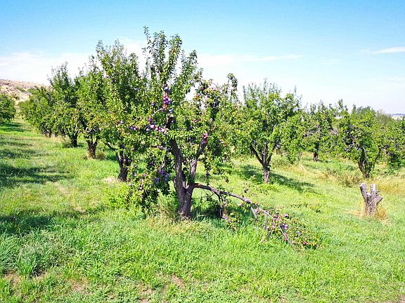 Organic orchard lying between the Black Canyon Canal and the Farmers Cooperative Canal on the outskirts of Emmett, Idaho. This orchard has been pesticide free for over 20 years! It consists of 48 acres of mostly level topography and backs up to thousands of acres of public BLM land along the southern border. The over 41 acres of cropland consists of plum trees, cherry trees, and a variety of apple trees that yield delicious produce annually. The orchard is irrigated via hand lines and an irrigation pump with 43.42 water right acres provided through the Emmett Irrigation District. At the front of the property is a single level 3 bedroom home with an attached garage. Outside of the home is a covered back patio and beautiful yard with white picket fencing and mature shade trees. A NEW 45 gpm well was installed in spring of 2023.
