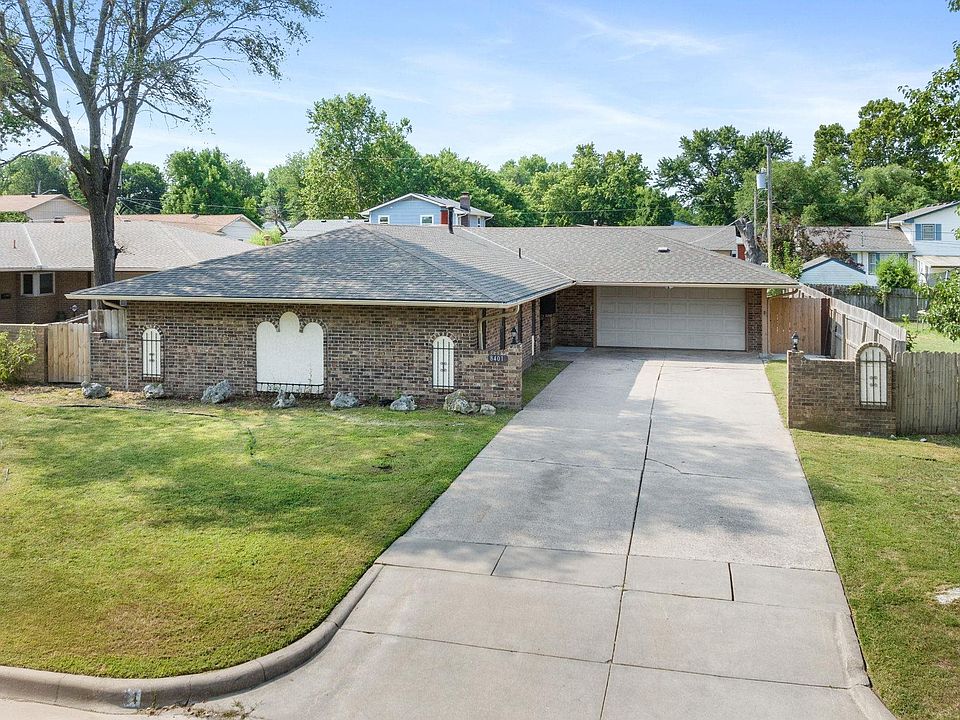 Easy living in this 0 entry 4 bedroom, 2.5 bath patio home! This all brick home offers large bedrooms, an open kitchen with space for a dining table, granite counters and a beautiful living room with a fireplace and built-ins. The back yard is fully fenced with a patio for entertaining and garden area or you hobbies! You'll find exposed brick in almost every room giving you a an urban vibe! Such a neat feature that gives this home character! Be sure to check out the 2 car oversized garage! You have options here as the garage has been transformed into additional living space with a bar for entertaining, but the garage door remains and can easily be used as a traditional garage too! The options are endless! The location is convienent to Rock and Webb Rd. with easy access to Kellogg and nearby restaurants and some of Wichita's best shopping areas are just around the corner. Be sure to check this one out!