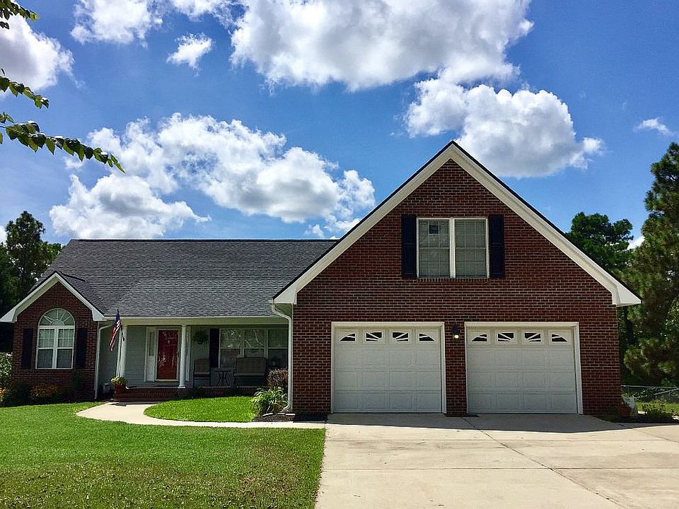 Move in Ready! 20 minutes to Bragg! Gorgeous 4 bedroom, 3 full bath home on 1.24 acre lot in quiet Hunter's Ridge subdivision. No city taxes, no HOA. New roof and hardiplank siding and trim all freshly painted. This home features 2 master suites, one upstairs and one down, hardwood and tile floors throughout downstairs. Kitchen recently updated with granite and stainless steel appliances. Great walk-in closets with built ins, spacious bedrooms. Cathedral ceiling in great room and an open flowing floor plan. Smart home with keyless entry, app accessible security system, video cameras, doorbells, & thermostats. New fully fenced backyard with firepit, recently added in-ground salt water pool, and pool house with 3 piece bathroom, kitchenette, storage, recreation space, & screened-in porch. Don't miss this!